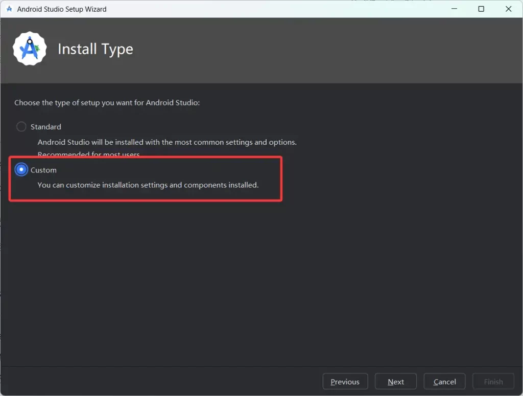 如下图,到这一步,如果不想默认下载到C盘,我们选择Custom来自定义下载路径
