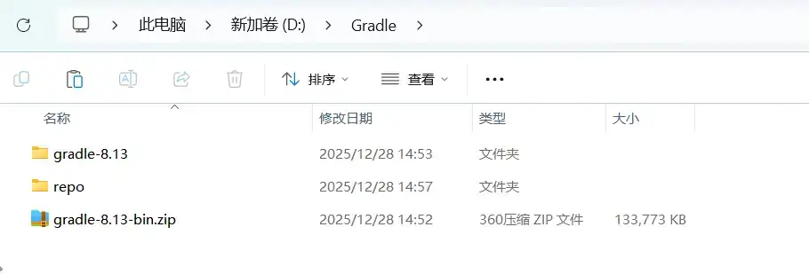 手动下载Gradle后,放置在任意位置让后解压即可,如图