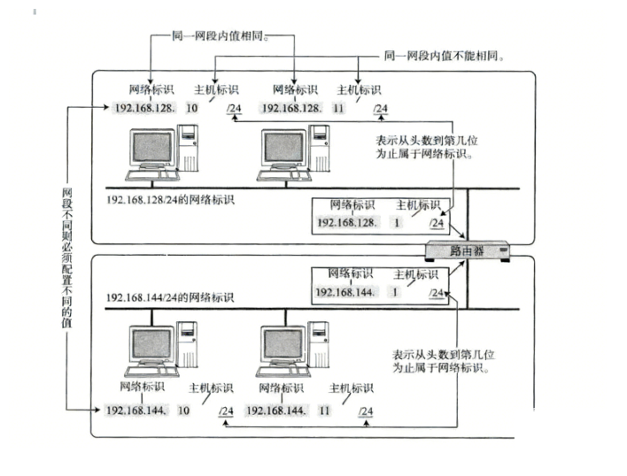 通过合理设置主机号和网络号,就可以保证在相互连接的网络中,每台主机的IP地址都不相同.