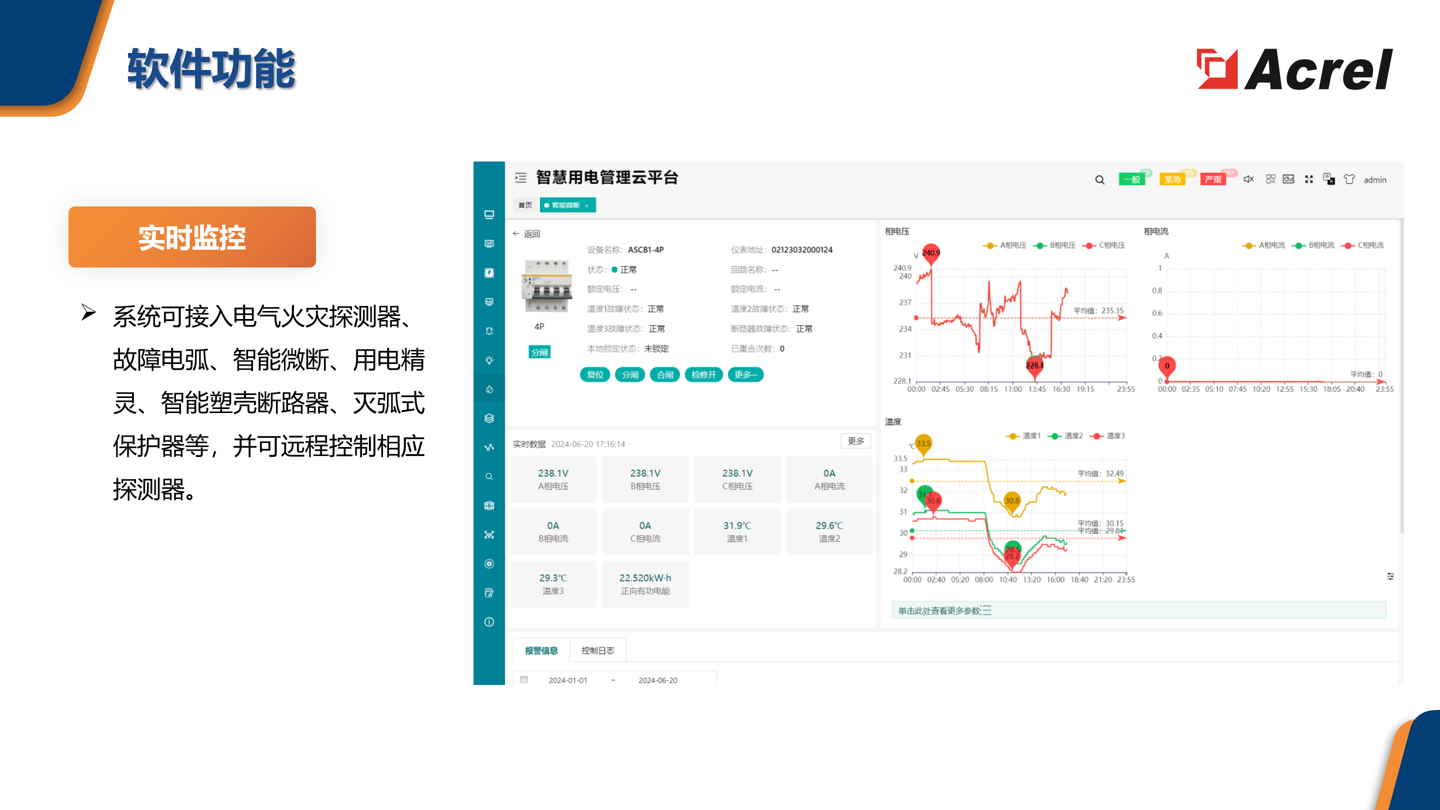 安科瑞故障电弧探测器可无缝接入智慧用电管理云平台,实现: