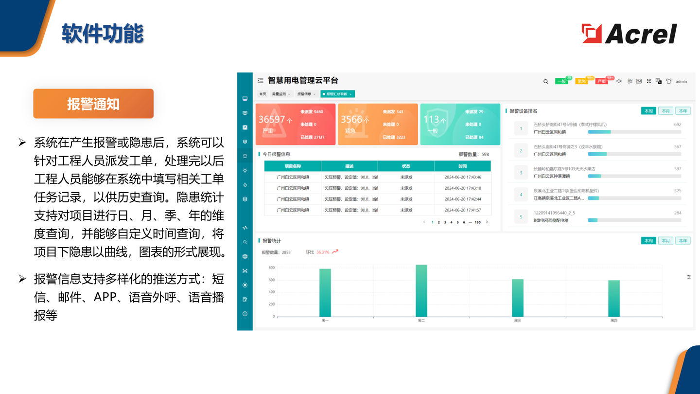智能告警: 多方式推送报警信息(平台、APP、短信等),确保不遗漏。