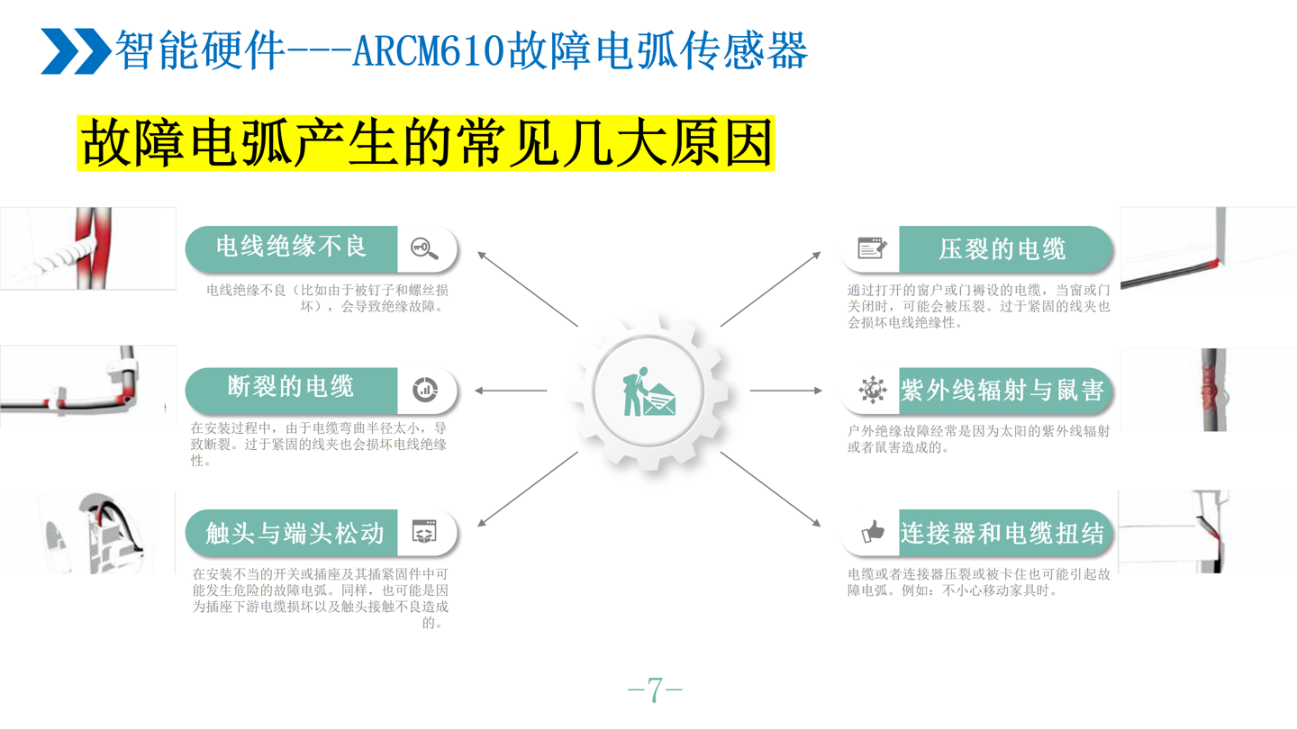 故障电弧是电气线路中一种异常放电现象,通常发生在电线绝缘破损、接触不良或设备内部故障时。与普通短路不同,故障电弧电流较小,传统断路器和漏电保护器无法有效检测和切断,极易引发火灾。
