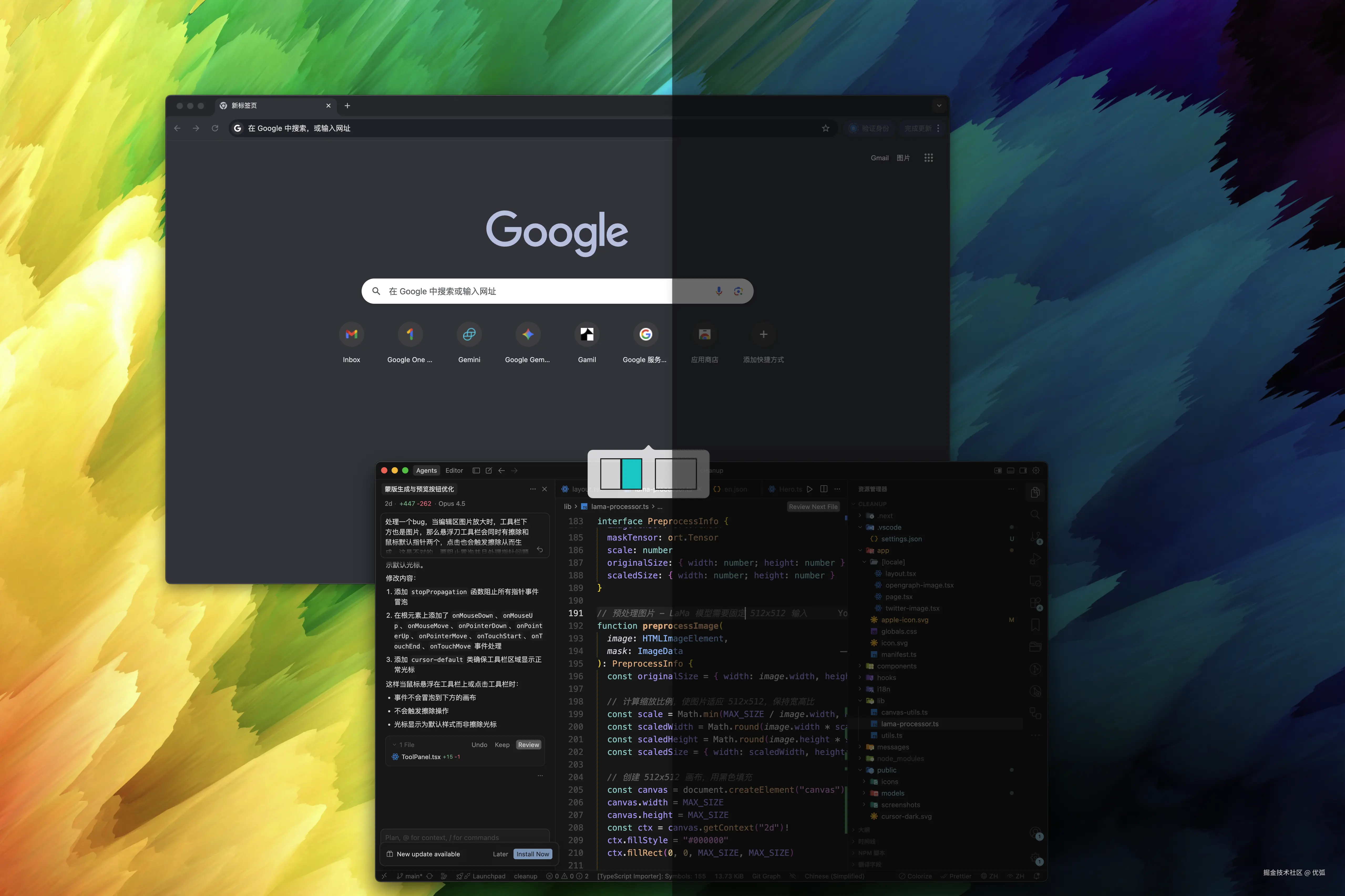 - 一边IDE一边AI面板,再加终端,屏幕直接挤爆