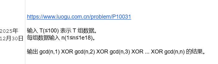 注意到这是 g c d gcd gcd,根据裴蜀定理有 g c d ( n , i ) = g c d ( n , n − i ) gcd(n,i)=gcd(n,n-i) gcd(n,i)=gcd(n,n−i)。这两项正好在这个异或序列的对称位置,抵消了,只会剩下中间的无法抵消,因此答案如上。