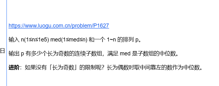 包含 m m m长度为奇数的子数组,就是把数组在 m m m分裂,然后在前,后数组里分别选一个后缀和前缀。长度为奇数决定了 m m m恰好是中间位置的数,也就是子树比它的,小的数字个数相等,那么可以维护前后缀里,大于 m m m个数减小于 m m m个数,类似于一个扫描线前缀和,把所有后缀的结果存起来,然后枚举前缀,去数据结构里查能配对的后缀个数。