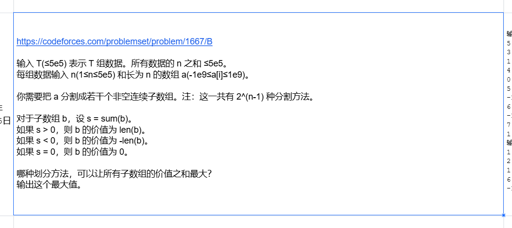 三个线段树分别维护 f i + i , f i − i , f i f_i+i,f_i-i,f_i fi+i,fi−i,fi的区间最值即可。每次查询是在前缀和 s i s_i si的一个区间内查询,这需要我们的线段树把 s i s_i si作为区间下标, s i s_i si可能 1 e 9 1e9 1e9,但只有 O ( n ) O(n) O(n)个不同值,所以先把 s i s_i si都离散化,然后再作为下标。