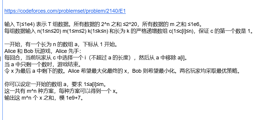 所以一个 m a s k mask mask方案数是 p o w ( m − x + 1 , c n t 1 ) ∗ p o w ( x − 1 , c n t 0 ) pow(m-x+1,cnt_1)*pow(x-1,cnt_0) pow(m−x+1,cnt1)∗pow(x−1,cnt0)。