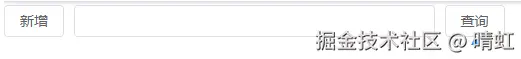 通过拖拽组件区中的行列组件,我们将它放置到视图绘制区中,这样就可以往行列组件中拖拽任意的组件了。 比如这里我们首先放置了一个新增按钮,然后又放置了一个查询输入框,最后我们又放置了一个查询的按钮。 因为查询按钮是最后放置的,因此目前默认它就是可编辑的状态,所有的设置都会对这个按钮生效。