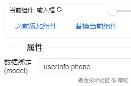 当前组件 显示了当前组件的名称,如:按钮、输入框、表格等,右边有一个刷新图标,如果更改组件某个配置页面没有自动更新的话,可以点击该图标手动刷新状态。