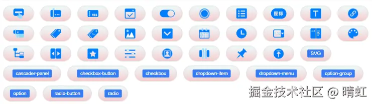 基本组件栏: 一般的表单元素组件,或者一些基本元素的组件。