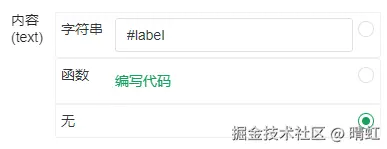 绑定选项的label属性,内容是通过文本组件渲染,从作用域中获取数据: