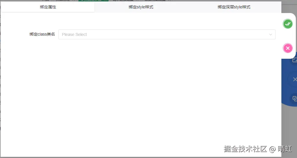 除了原生 div 或者 span 等标签元素,其他所有的组件全部都默认都由 element-plus 中的组件来渲染,因此属性区域可配置项默认包含了 element-plus 官网中对应组件的所有属性,但是也有一些公共的属性需要配置,这里对一些属性做一下陈述: