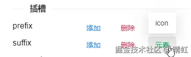 给输入框组件添加一个 prepend 插槽和一个 suffix 插槽。