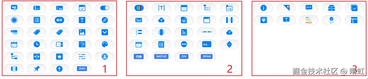复合组件栏: 包含嵌套结构的元素组件等,也就是由多个基本组件组成。