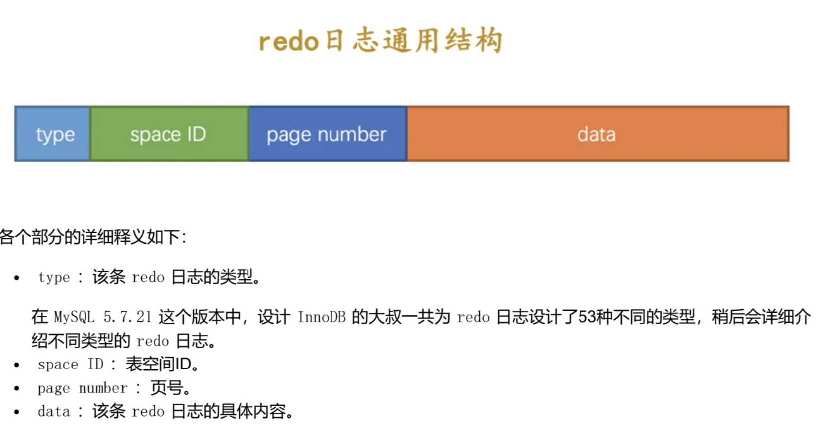 innodb_flush_log_at_trx_commit参数控制。 - redo log 是物理逻辑日志 ,它记录的是对某个数据页的物理修改内容,例如"在表空间A、页号B、偏移C处写入数据D"。这种格式使得恢复效率非常高。