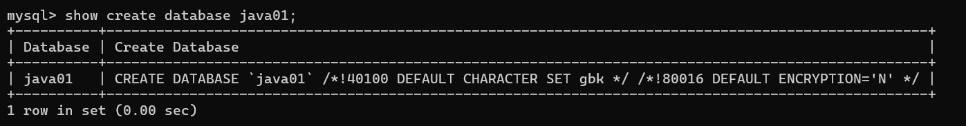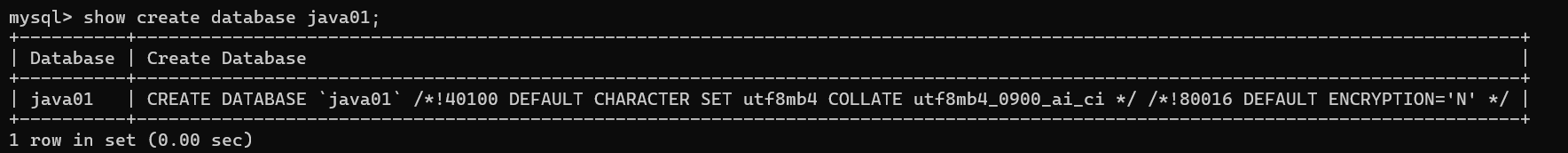 create database if not exists java01 character set utf8mb4 collate utf8mb4_0900_ai_ci;