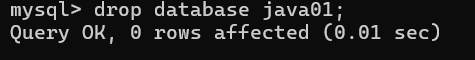 •删除数据库之后,使用show databases; 语句查看不到对应的数据库
