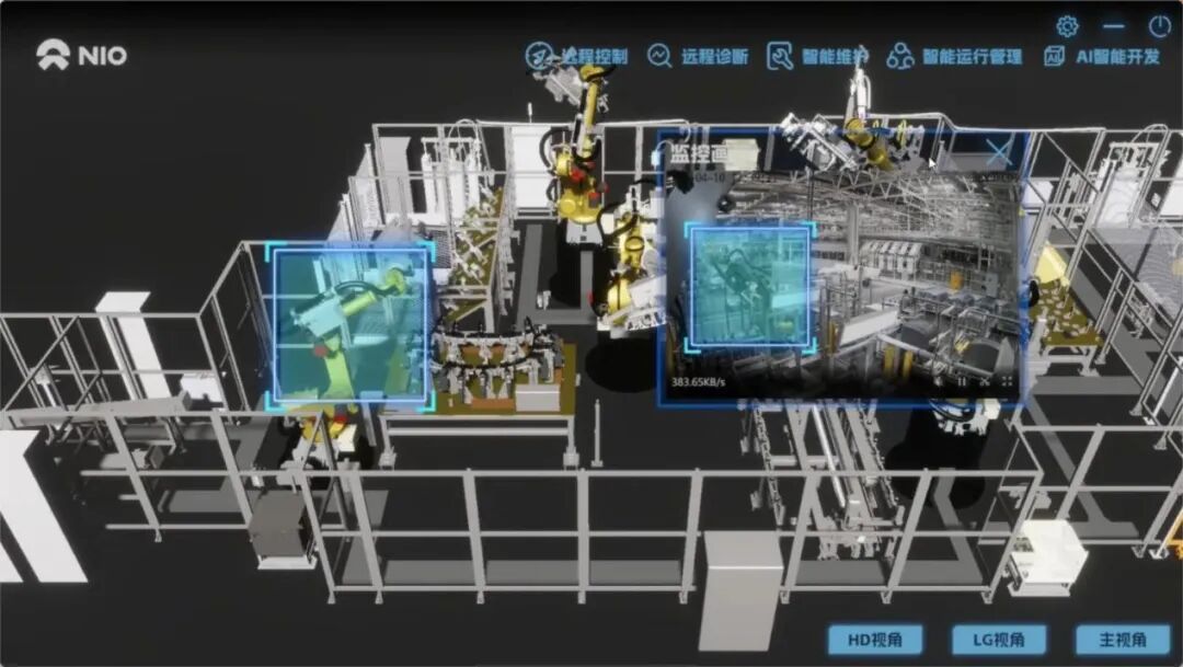 与蔚来联合打造高精度数字孪生工厂,通过设备数据同步、AGV调度监控等技术,实现"以虚映实""以虚控实",并探索AI驱动的"以虚优实"目标;