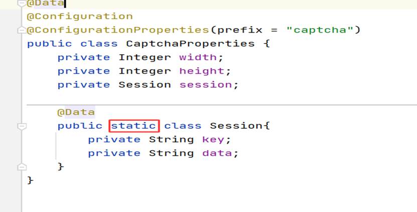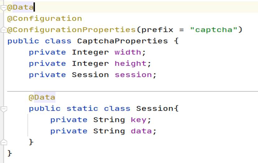 思考一下,由于这个验证码的宽度,高度,针对的个体不同,所以我们可以把他写成一个对象到yml文件中,这样既可以解耦和,也会方便很多