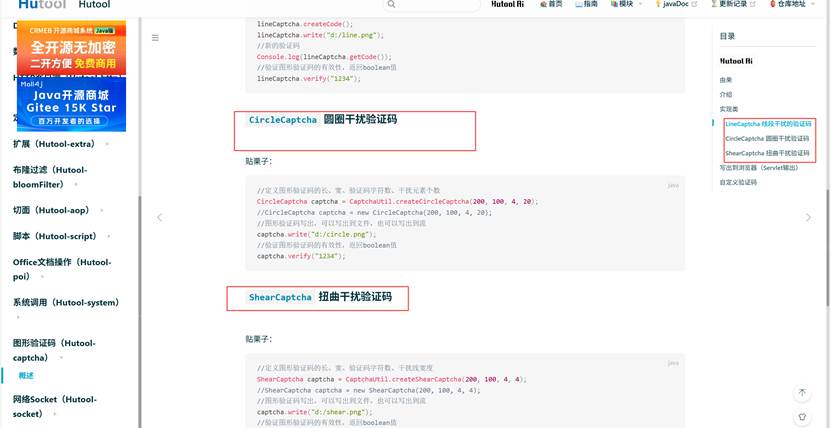 在HuTool的官网上,找一个自己喜欢的,这里我选择了扭曲干扰