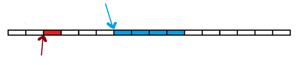 接下来就是剩余成员的内存开辟了,我们来看第二个,是int类型,那么这个类型的对齐数就是min(4,8),也就是4,那么我们要先找到一个偏移量是4的整数倍的地址,我们从char往后找,可以发现下图蓝色箭头所指的地址偏移量就是4,找到地址后再分配 4个字节给这个成员,如下图