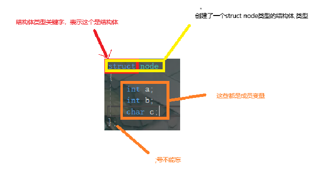 结构是一些值的集合,这些值称为成员变量,结构的每个成员可以是不同类型的变量,我们来随便写个结构体,如下图