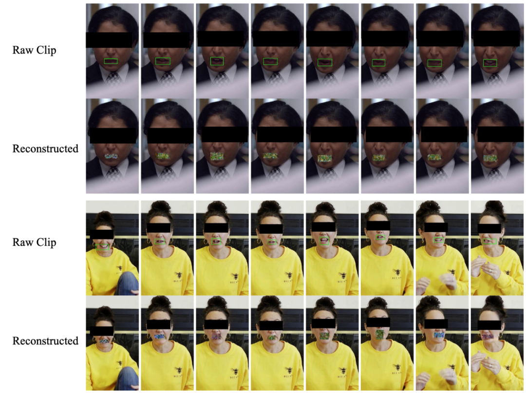 - 区域定位:首先在原始视频帧上进行面部关键点检测,计算出覆盖嘴部区域的像素级边界框。