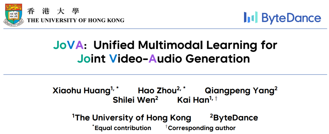近日,来自香港大学和字节跳动的研究团队提出了一种简单有效的框架 ------JoVA,它支持视频和音频的 Token 在一个 Transformer 的注意力模块中直接进行跨模态交互。为了解决人物说话时的 "口型 - 语音同步" 问题,JoVA 引入了一个基于面部关键点检测的嘴部区域特定损失 (Mouth-area specific loss)。
