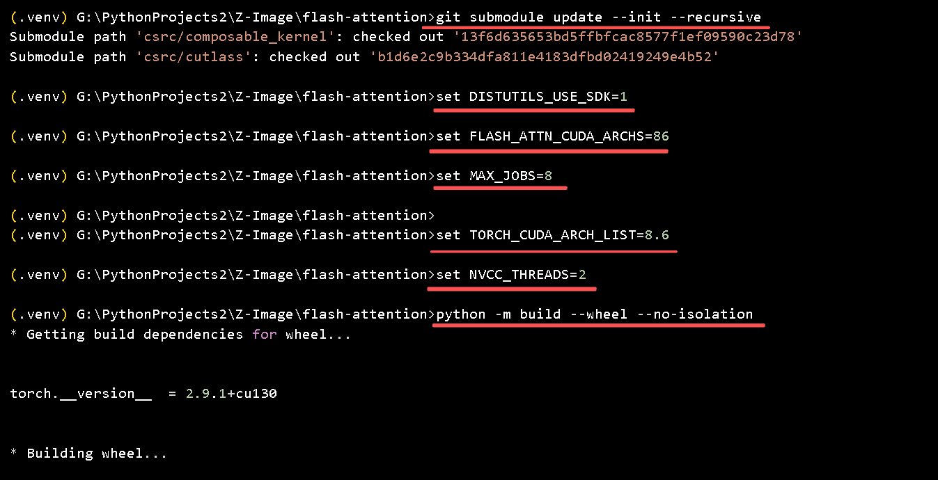 大家好,今天再次试练并分享一个在 Windows 11 + RTX 3090 + PyTorch 2.9.1+cu130 环境下成功本地编译 Flash-Attention 2.8.3 并生成 wheel 文件的完整过程。