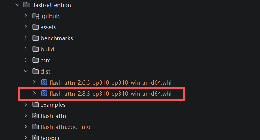 - 最后输出 Successfully built flash_attn-2.8.3-cp310-cp310-win_amd64.whl