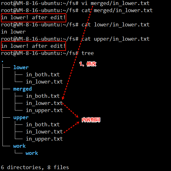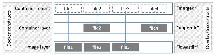 图中可以看到三个层结构,即 lowerdir、upperdir、merged 层