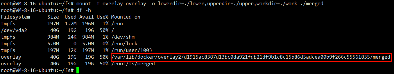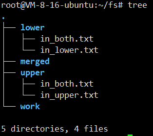 OverlayFS 将单个 Linux 主机上的两个目录合并成一个目录。这些目录被称为层,统 一过程被称为联合挂载 OverlayFS 底层目录称为 lowerdir, 高层目录称为 upperdir,合并统一视图称为 merged