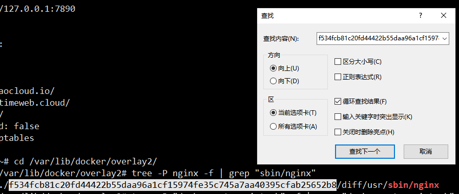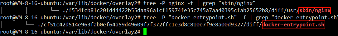 找nginx的启动文件,执行命令 /var/lib/docker/overlay2# tree -P nginx -f | grep "sbin/nginx"
