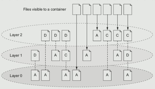 如果一个文件在最底层是可见的,如果在 layer1 上标记为删除,最高的层是用户看到 的 Layer2 的层,在 layer0 上的文件,在 layer2 上可以删除,但是只是标记删除,用 户是不可见的,总之在到达最顶层之前,把它标记来删除,对于最上层的用户是不可 见的,当标记一删除,只有用户在最上层建一个同名一样的文件,才是可见的。