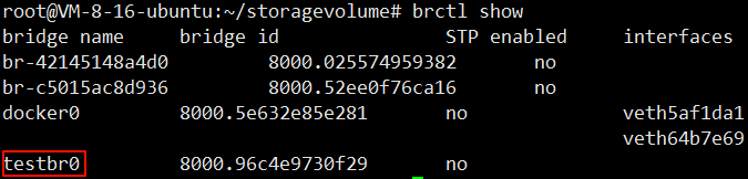 再查看宿主机docker0网桥上的网卡,执行命令 brctl show