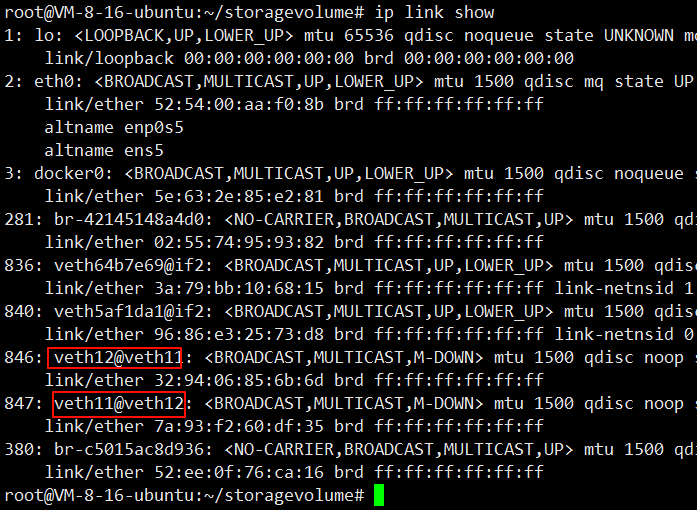 再推出容器,查看宿主机网卡信息,执行命令 ip link