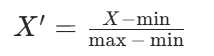 归一化是将特征映射到指定区间(默认 [0,1]),公式为: