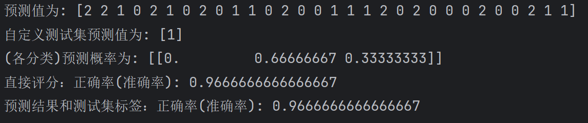 print(f'预测值为: {y_test}') # 预测值为: [1]