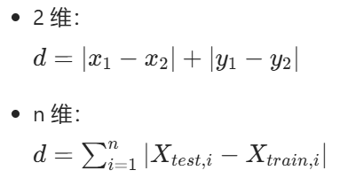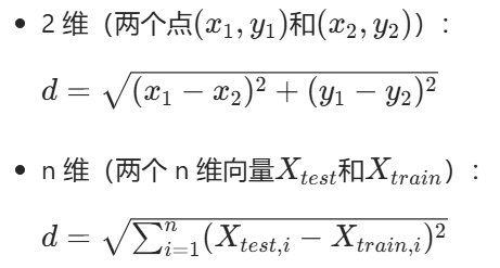 - 计算新样本(X_test)与所有训练样本(X_train)的距离(常用欧氏距离);