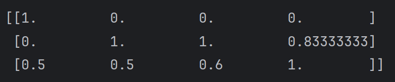 - 第二列(2、4、3):min=2,max=4 → 映射后:0、1、0.5最终归一化结果:[[1,0], [0,1], [0.5,0.5]]