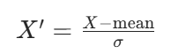 标准化是将特征转换为均值 = 0、方差 = 1 的正态分布,公式为: