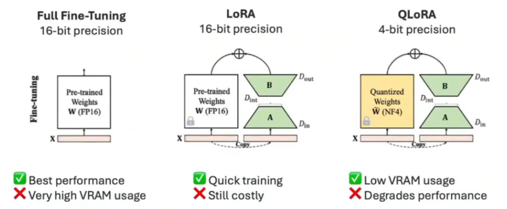 | QLoRA | 4 | 6GB | 12GB | 24GB | 48GB | 72GB | 30GB | 96GB |