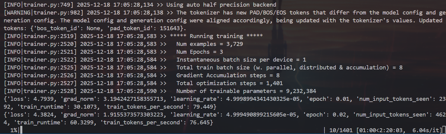 LLaMA3-8B模型还是有点大,8B的float16精度需要16G大学,先用一个Qwen2-1.5B-Instruct来做实验