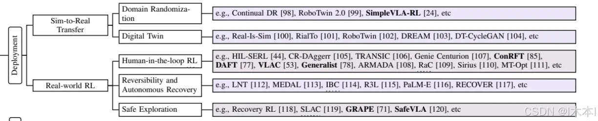 将RL-VLA模型从"实验室"推向"生产线",主要有两条技术路径:一是先在仿真中"演练"再迁移到现实(Sim-to-Real),二是在现实世界中直接"实战"学习(Real-world RL )。