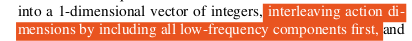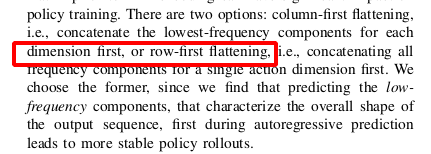 在展平过程中,我们通过优先包含所有动作维度的低频分量(including all low-frequency components first),对不同动作维度进行交错排列(interleaving)。