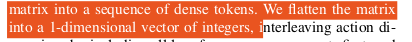 为了真正实现压缩效果,我们必须将这一稀疏矩阵转换为一串稠密 token。为此,我们将该矩阵展平成一个一维整数向量(1-dimensional vector of integers)。