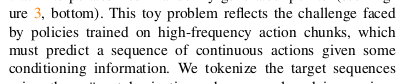 这个玩具问题(toy problem)反映了在高频动作块(high-frequency action chunks)场景下训练策略时所面临的挑战: