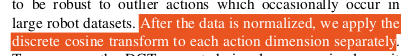 在完成归一化之后,我们对每一个动作维度分别应用离散余弦变换(discrete cosine transform, DCT)。