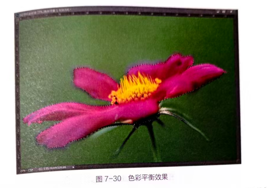 (8)完成色彩平衡图层效果参数设置后,在图层面板设置混合模式为 "正常",不透明度为 100%,填充值为 100%,如图 7-30 所示。