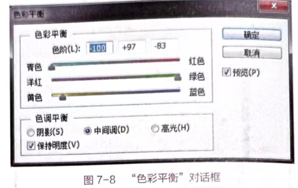 与亮度 / 对比度命令一样,色彩平衡工具提供一般化的色彩校正。如果要想精确控制单个颜色成分,可以使用色阶、曲线、色相 / 饱和度、替换颜色等专门的色彩校正工具。打开色彩平衡对话框,如图 7-8 所示。
